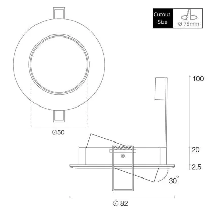 Any Lamp Incasso Spot Circolare Inclinabile Aluminium | Ritaglio 75mm - GU5.3 Attacco
