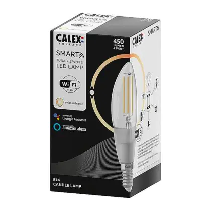 Stai cercando una lampadina smart a LED con attacco E14 di alta qualità? Allora la lampadina LED Calex Smart Candela fa per te! Questa lampadina smart ha attacco a vite E14, che la rende facile da montare, pronta all’uso e compatibile con la maggior parte di lampade e lampadari. Inoltre la forma a candela dà a questa lampadina un tocco di originalità. Come se non bastasse, risparmierai notevolmente sui costi energetici, perché questa lampadina a LED consuma solo 4,5 Watt e ha 2 anni di garanzia.