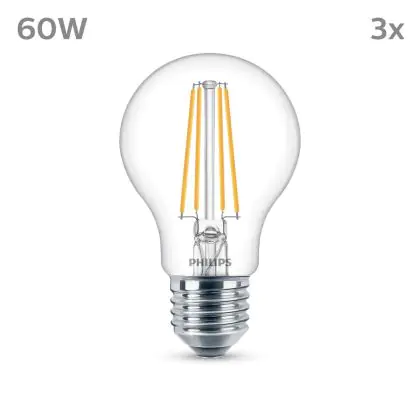 La Confezione Multipack 3x Philips Bulbo LED E27 Pera Filamento Chiara 7W 850lm - 840 Bianco Freddo è la perfetta sostituzione per la tua lampada convenzionale W con attacco E27 grazie alla sua tecnologia LED. Passare a LED ti offrirà tanti vantaggi!