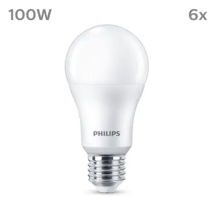 La Confezione Multipack 6x Philips Bulbo LED E27 Pera Ghiaccio 13W 1521lm - 827 Bianco Molto Caldo è la perfetta sostituzione per la tua lampada convenzionale W con attacco E27 grazie alla sua tecnologia LED. Passare a LED ti offrirà tanti vantaggi!