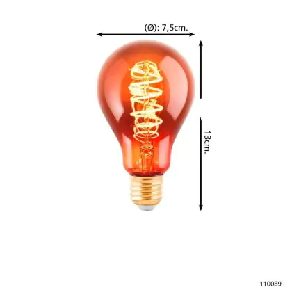 Descrizione Eglo LED Pera E27 Filamento Ambra 4W 30lm - 820 Bianco Molto Caldo | Dimmerabile - Sostitutiva 15W