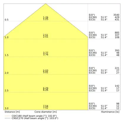 L'apertura del fascio luminoso indica l'angolo del fascio di luce proveniente da una lampada o lampadina. Si misura in gradi (D) e più piccolo è l'angolo, più piccola è l'apertura del fascio di luce.