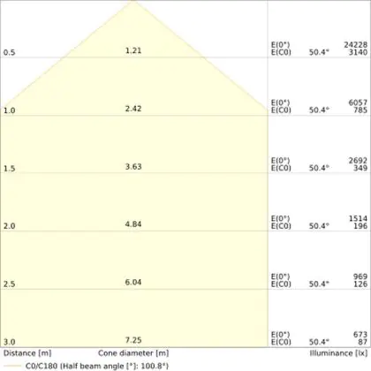 L'apertura del fascio luminoso indica l'angolo del fascio di luce proveniente da una lampada o lampadina. Si misura in gradi (D) e più piccolo è l'angolo, più piccola è l'apertura del fascio di luce.