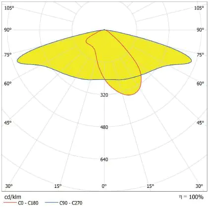 L'alloggiamento impermeabile di questa sorgente luminosa non è l'unica ragione per cui è perfetta per l'uso all'aperto. Infatti bisogna considerare anche la distribuzione della luce di questa lampada stradale, che ha apertura del fascio luminoso di 160x58° ed emette luce di colore 6500K - Luce del Giorno.