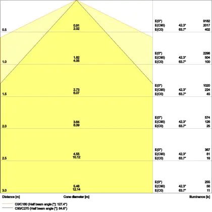 Angolo del Fascio luminoso (gradi) | 90 |