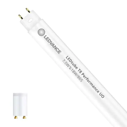 Il Ledvance Tubo LED T8 Performance (EM/Mains) Ultra Output 7.5W 1100lm - 865 Luce del Giorno | 60cm - Dimmerabile - Sostitutiva 18W è l’alternativa perfetta per il tubo fluorescente standard 18W nelle plafoniere con un reattore. Con questo tubo LED hai una garanzia di una vita media utile molto lunga e 5 anni Lampadadiretta.it di totale garanzia. .