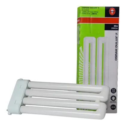 Le Osram Dulux F 36W/827 sono lampade fluorescenti compatte che presentano una potenza pari a 36W. Le stesse sono poi dotate di attacco a 4 pin (perni). I vantaggi di tali lampade sono diversi: oltre alla lunga vita di 10.000 ore é importante ricordare l'alta efficienza luminosa.