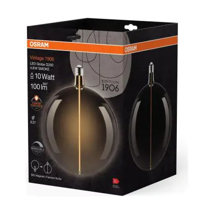 La Osram Vintage 1906 LED E27 Sferica Filamento Ghiaccio 4.8W 100lm - 818 Bianco Molto Caldo | Dimmerabile - Sostitutiva 15W è la perfetta sostituzione per la tua lampada convenzionale 15W con attacco E27 grazie alla sua tecnologia LED. Passare a LED ti offrirà tanti vantaggi!