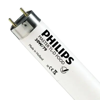 I Philips TL-D Food 30W 79 - 90cm (MASTER) sono tubi fluorescenti dotati di una potenza di 30W e di attacco G13. La lunghezza degli stessi é di 90cm. La loro vita si colloca intorno alle 15.000 ore in media e l'indice di resa cromatica assume un valore tra 70-79Ra. Tali tubi fluorescenti anche grazie alla temperatura di colore di 3800K, vengono utilizzati per l'illuminazione di articoli alimentari quali carni e prodotti da panetteria.