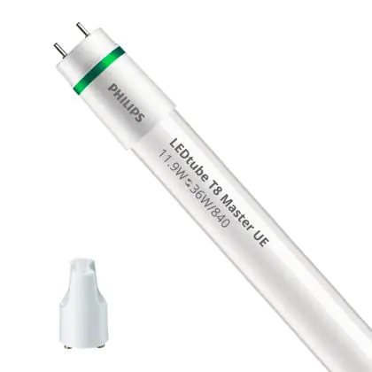 Il Philips Tubo LED T8 MASTER (EM/Mains) Ultra Efficiency 11.9W 2500lm - 840 Bianco Freddo | 120cm - Sostitutiva 36W è l’alternativa perfetta per il tubo fluorescente standard 36W nelle plafoniere con un reattore. Con questo tubo LED hai una garanzia di una vita media utile molto lunga e 5 anni Lampadadiretta.it di totale garanzia. .